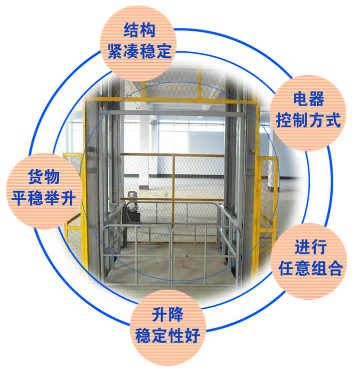 導軌式升降機是利用液壓缸上升(shēng)和下降的原理製造的一種起重設備(bèi),又稱軌道起升(shēng)貨梯,是一種常用的(de)無剪式液壓起重設備。由於其承重大,結構簡單,是大型工廠,賓館,物流中心,汽車4S服務店等場所經常使用的(de)起重設備。該裝置具有幾個優點,操(cāo)作簡單,穩定性好,安全係數高的升(shēng)降(jiàng)平台。