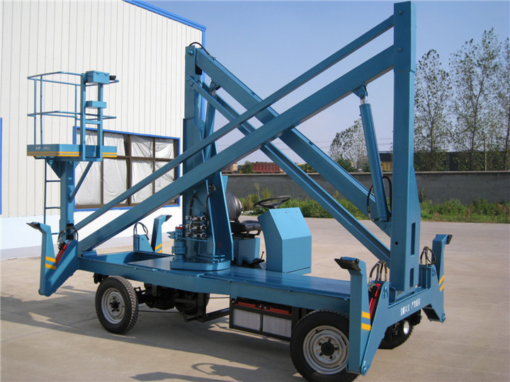 (2)帶載行駛、作業穩定性好。底盤結構突破了傳(chuán)統的設計理論和方法,通過優(yōu)化上車平台總體布(bù)局(jú)與載荷分布,減少了重心偏移。采用獨(dú)特的大角度後仰式鉸點結構,合理設置多種配重模塊,有效地平(píng)衡了工作力矩。采用H型變截麵複合箱梁剮性車架和高負荷實心橡膠輪胎,增加了底盤整體剛度,保證了整機行駛、作(zuò)業過程的穩定性,實現了高空作業升降平台車帶載行駛的功能。