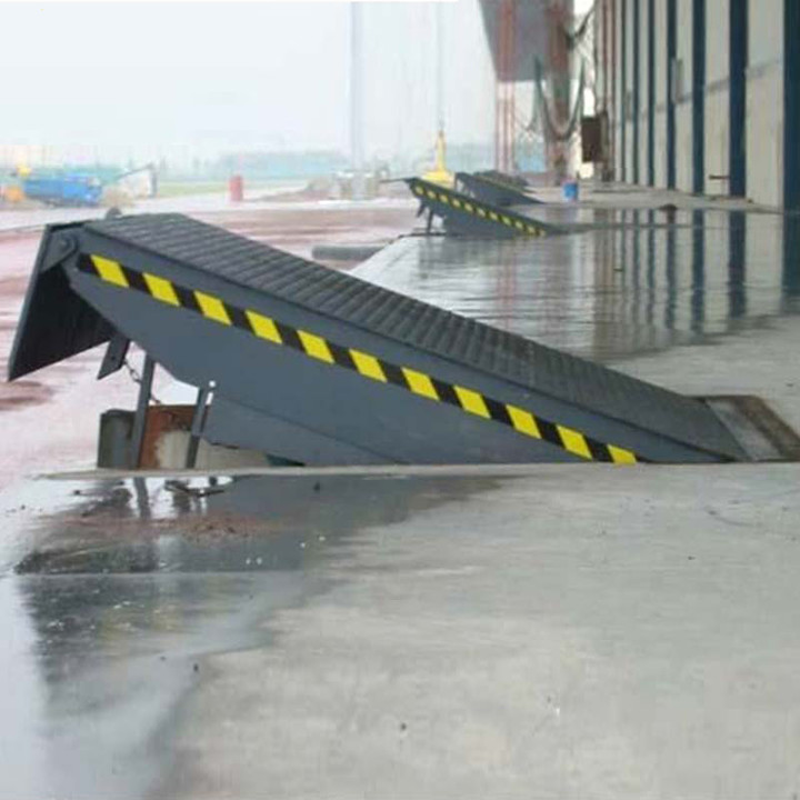 月台集裝箱裝卸平台的應用:產(chǎn)品可根據用戶(hù)的不同需要(yào),廣泛應用於碼頭、站台、倉庫等地(dì)。在外形(xíng)尺寸,承受載荷等方麵(miàn)都可以作特殊(shū)設計。 固定式登車橋安裝在貨台的側麵,與貨台(tái)地麵和側(cè)麵(miàn)齊平。 固定式登車橋的橋板可上、下傾斜,其外端(duān)可高出或低於貨台平麵,使之與(yǔ)車廂(xiāng)等高。橋板的(de)頂端有一翻板,自動搭在車廂邊緣,使貨台與車(chē)廂平穩過(guò)渡。