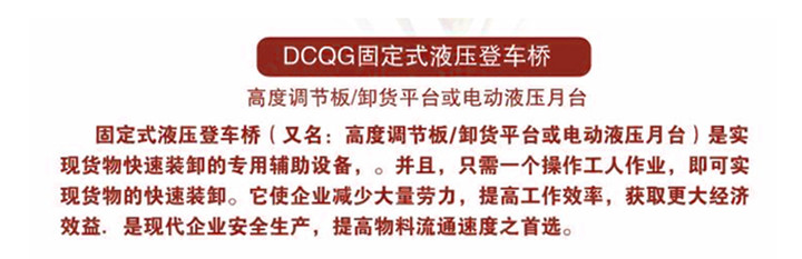 3、結束過程:當貨物裝卸完畢後,按住上升按鈕抬起大板,小(xiǎo)板自動複位,當大板抬到固定高度時,然後鬆開(kāi)按鈕(niǔ),登車橋(qiáo)在自重作用下慢慢複位,整(zhěng)個工作過程完畢。