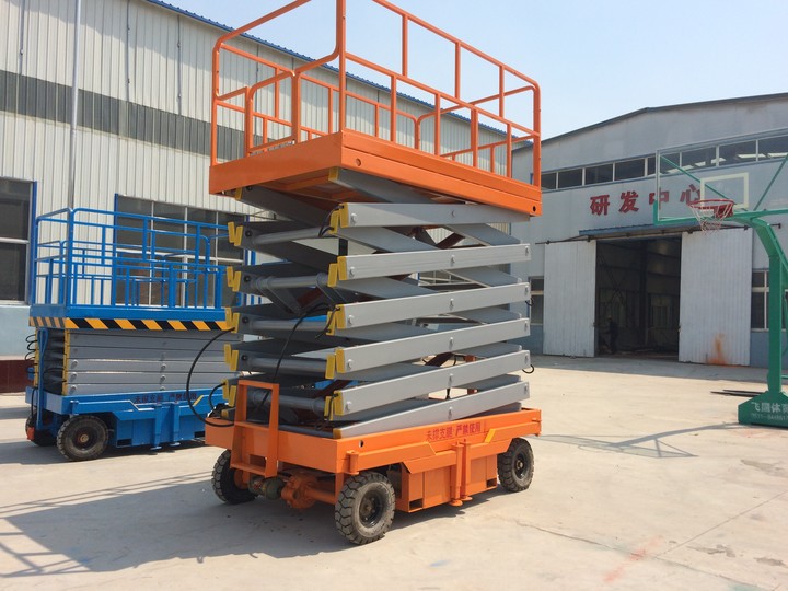 產品說明:移動剪叉式升降機的剪叉結構主要采用鋼鐵矩形管製作,它的剪叉機械結構,使升降台起(qǐ)升有較高的穩(wěn)定性,寬大的作業平台(tái)和較高的承載能力,使高空作業範圍更大、並適合多人同時作業。平台升降動(dòng)力為手動或電動,電手兩用或遙控器控製,在停電時仍可使(shǐ)用。本產品具有移動靈活、升降平穩、操作方便、載重(chóng)量大等特點(diǎn)。升降動力分為220V或(huò)380V電源(也可以用電(diàn)瓶、柴油機為升降(jiàng)動力),采用意大利(lì)和國產液壓泵站,台(tái)麵設有防(fáng)滑絕緣塑質扣板,更換方便,整體美觀大方。五、分類: