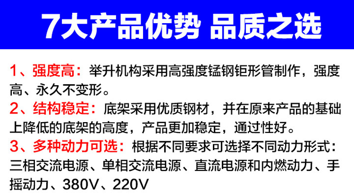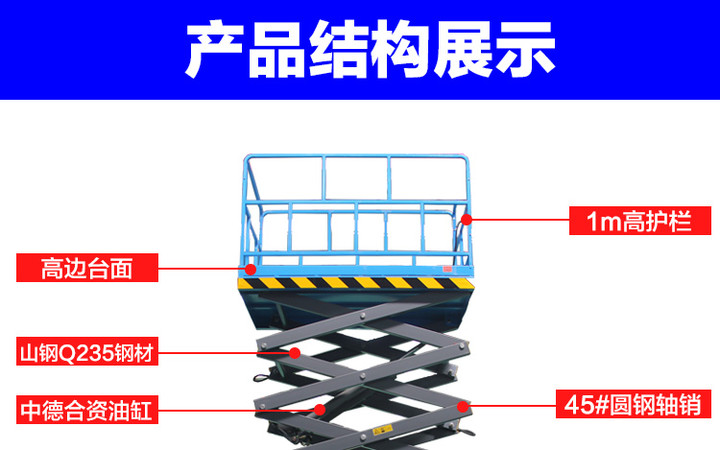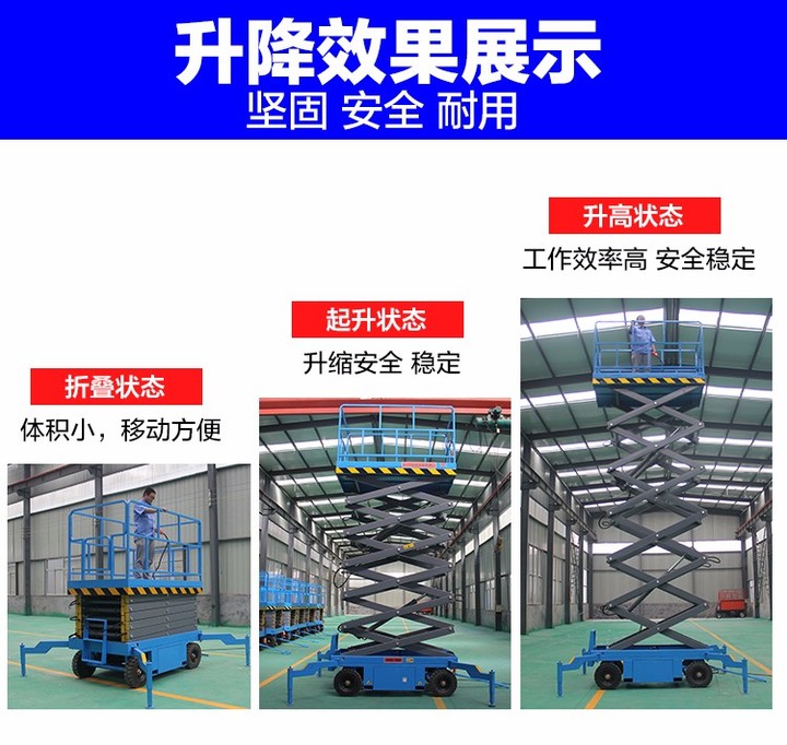 2、需要進入(rù)移動升降平台下麵檢修時,必須吊住升降台工作平台。以(yǐ)防升降台突然下降,造成人(rén)員傷亡(wáng);