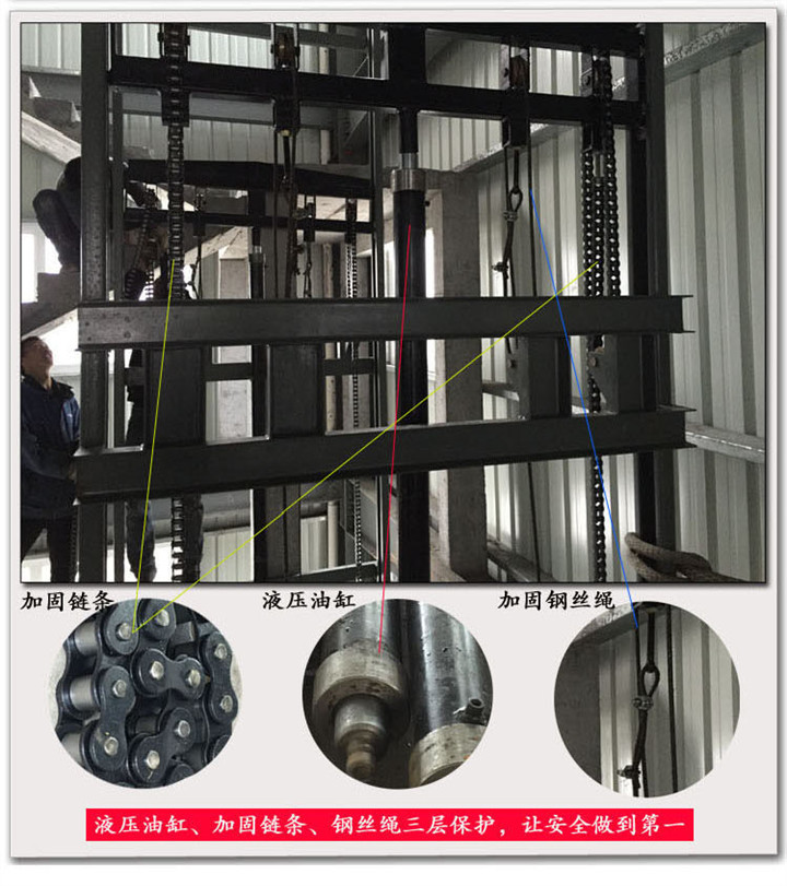 安全性能:濟南麻豆传媒官网在线观看載重1-10噸、升高2-20米升降貨梯在具(jù)備傳統曳引(yǐn)式電梯的安全裝置的同時, 還設有:溢流閥:可防止上行運動時係統壓力過(guò)高,應急手動閥:電源發生(shēng)故障(zhàng)時, 可使轎廂(xiāng)應急下降(jiàng)到最近的層樓位置開門, 手動(dòng)泵:當係統發生故障(zhàng)時, 可操縱手(shǒu)動泵打出高壓(yā)油使轎廂上升到最近的層樓位置; 管路破裂閥:當液壓係統管路破裂轎廂失速下降時, 可自(zì)動切斷油路停止(zhǐ)下(xià)降。油(yóu)箱油溫保護:當油箱中油溫超過標準設定值時, 油溫保護裝置發生信號, 暫停電(diàn)梯使用, 當油溫下降後方可啟動升降機。