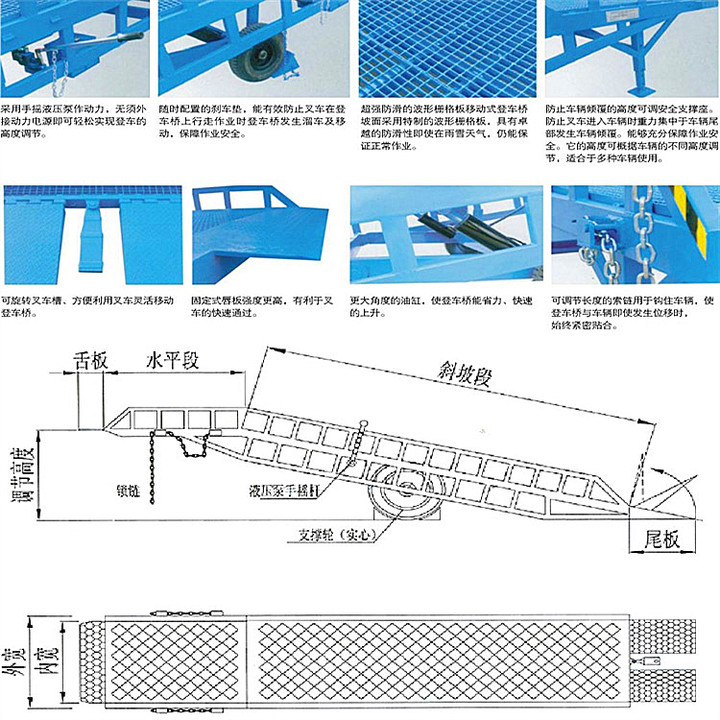 功能:方便卸(xiè)貨(huò),穩定性強,維修成本低。適用於裝卸場地上各種車輛(liàng)以及交通相對(duì)繁忙的場所。