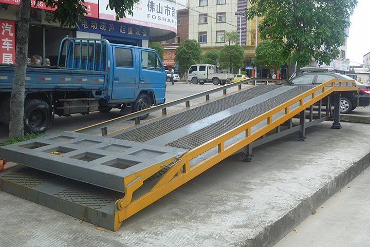 用於現場無裝卸貨平(píng)台或需要流動裝卸貨物的場所。如果物流現場沒有(yǒu)裝卸貨平台(tái),作為補救措施,移(yí)動式登車橋是非常適用的方案之一,移動式登車橋相當於一個移動的鋼結斜坡,叉(chā)車同樣能直接駛入卡(kǎ)車車廂內部進行批量裝卸作業。隻需(xū)單人(rén)操(cāo)作,不需動力電源,即可實現貨物的安全快速裝卸。
