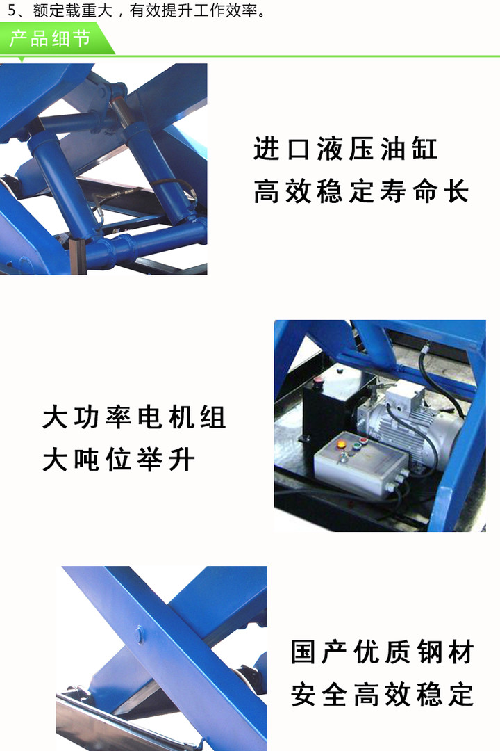 剪式升降機_固定式升降機_剪式液壓貨梯適用於機(jī)場碼頭,飛機維修,車站,碼頭,商場,體育場館,小區物(wù)業,廠礦等大麵積高空連續作業。部分產品具有自動行走功(gōng)能(néng),可以(yǐ)在不同條件下工作,快速(sù),慢走,剪式升降機_固(gù)定式升降平台_剪叉式液壓貨梯隻有一(yī)人在空中可以連續上下,前進,後退,轉動和(hé)其他行動。